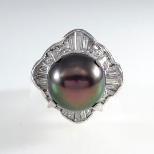 BLACK PEARL & DIA PLAT RING